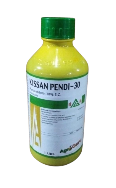 Kissan Pendi-30 (Pendimethalin 30% EC) is a herbicide of the dinitroaniline class used in pre emergence and post emergence applications to control annual grasses and certain broadleaf weeds. It inhibits cell division and cell elongation. After it’s application, a thin layer is formed on soil surface which prevents the germination of weeds. There must be sufficient soil moisture at the time of it’s application.